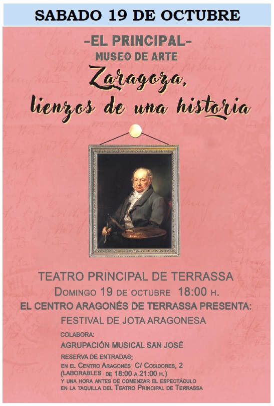 El Centro Aragonés de Terrassa, dentro de la programación de las fiestas del Pilar, presenta su festival de jota aragonesa “Zaragoza, lienzos de una historia”, un espectáculo de canto, baile y rondalla como homenaje musical a la ciudad de Zaragoza. Sumérgete en la fuerza y la belleza de la jota aragonesa a través de un […]