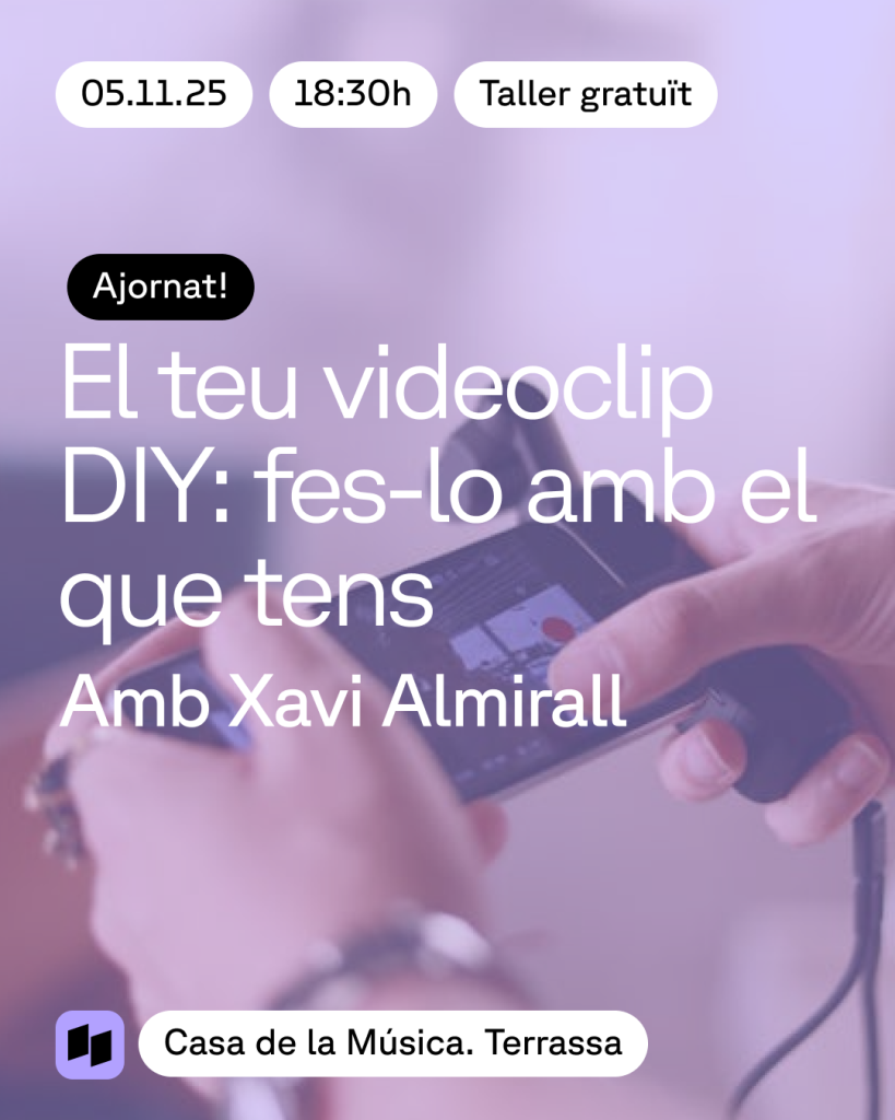 El teu videoclip DIY: fes-lo amb el que tens Un taller adreçat a músics i creadors que volen aprendre a fer videoclips amb recursos mínims. S’hi exploren conceptes bàsics, estils visuals i emocions que funcionen, així com les fases de creació d’un videoclip: des de la idea fins a l’edició. Es presenten aplicacions gratuïtes per […]