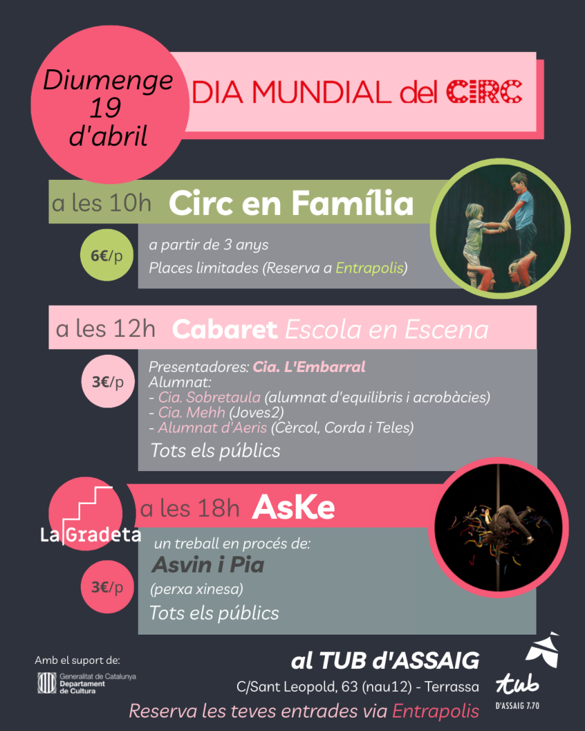 DIFERENTS DATES I ESPECTACLES! En motiu del seu 20è aniversari, la nostrada companyia Filigranes ens presenta un recorregut per la seva llarga i bonica trajectòria! De manera que us animem a que vingueu a gaudir d’aquest viatge en el temps! Hi haurà 3 espectacles diferents, tots ells per a tots els públics (infants a partir […]