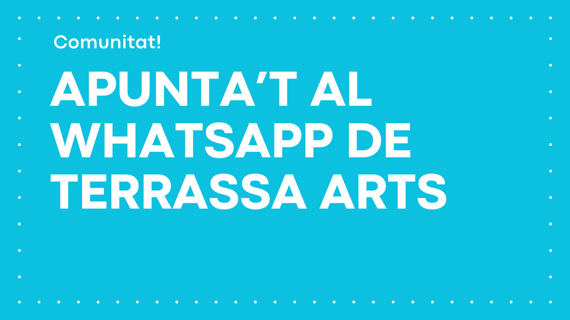 Si sou una entitat i voleu donar visibilitat a la vostra activitat cultural a Terrassa, només cal que ens envieu la informació mitjançant el formulari que trobareu al botó “ENVIAR ACTIVITAT”.