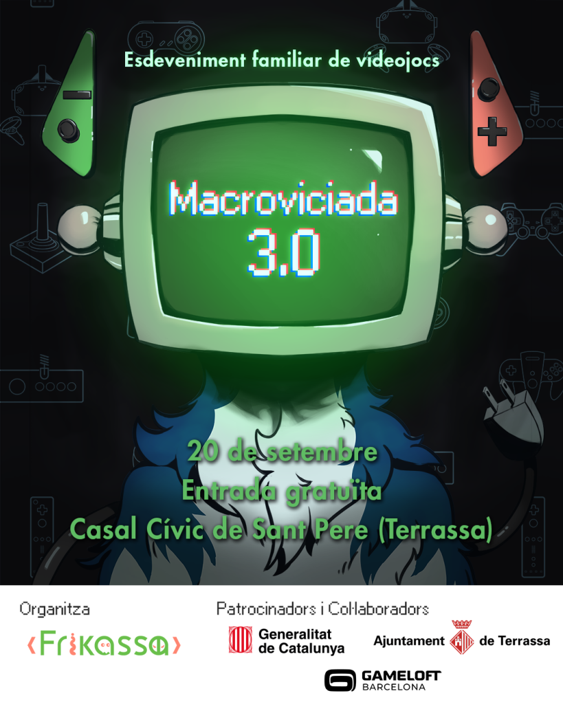 Us presentem el cartell de la MACROVICIADA 3.0! 🕹️ El Vici, la mascota de la Frikassa, us informa que un cop més tornem amb un esdeveniment familiar de videojocs GRATUÏT! Què hi trobareu? – Zona de consoles (retro, modernes, simulador de carreres, VR, etc.) – Xerrades per especialistes del sector – Tallers de retromod i […]