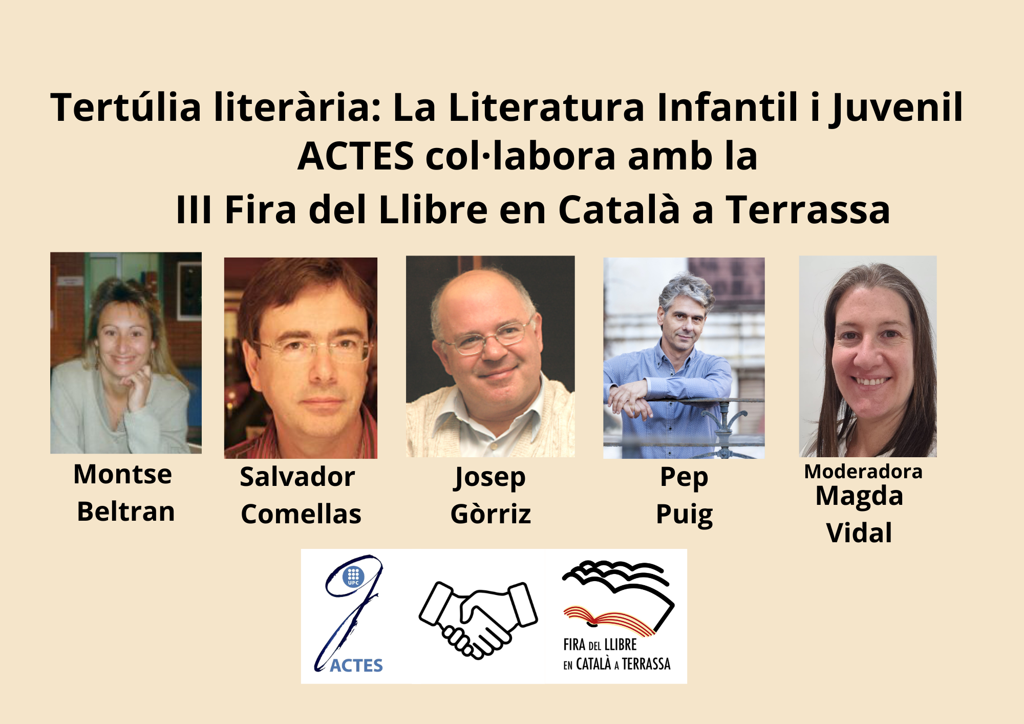 Tota la informacióDe la mà de quatre autors: Montserrat Beltran, Salvador Comelles, Josep Gòrriz i Pep Puig. Abordarem la importància que té per als infants i adolescents fomentar l’hàbit de llegir per crear futurs nous lectors. La dificultat d’escriure per a aquest públic i arribar a consolidar-lo, havent de lluitar al món de les pantalles.